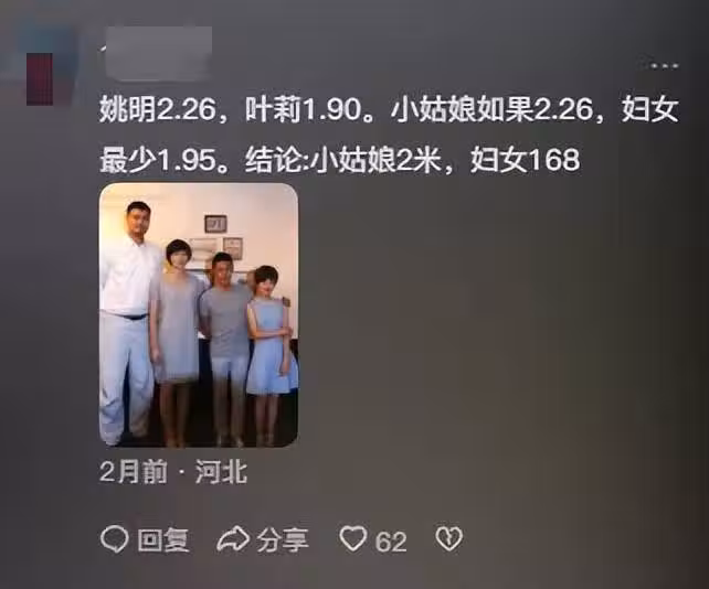 真實身高一暴露,網友的質疑聲也壓不住了,有的網友甚至拿姚明當例子,來推測女孩和她媽媽的身高。
