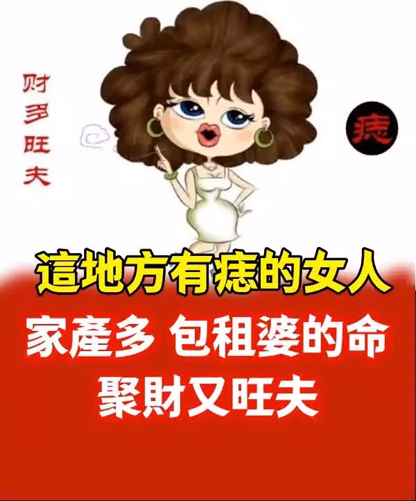 有些地方有痣的女人有共通點,(前提是形美大而色澤亮的吉痣,也就是活痣)這類痣相的女人不動產多,財多還福厚,不一定非常漂亮,但卻踏實過日子,能帶旺家運,成為家人和丈夫的堅實後盾,聚財又旺夫。