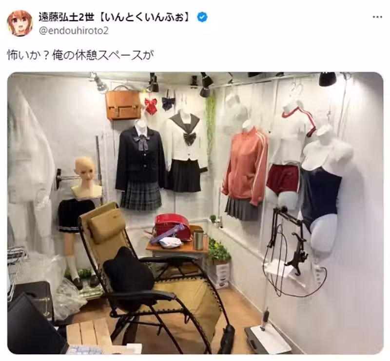 日本成人漫畫家遠藤弘土上個月在X發文,分享了家中收藏的大量「參考資料」……