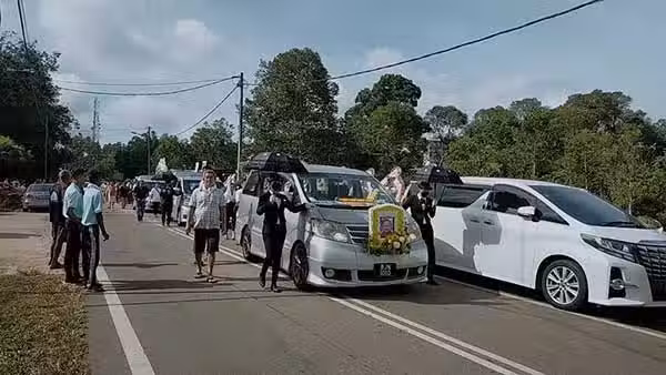 (東甲5日訊)「轎車與貨卡得撞3死5傷」案中的3名死者,馬華蓮花村支會財政鄭靜言、妻子吳桂萍及女兒鄭宇瑄的遺體今早舉殯,逾100名親朋好友到場哀送,陪他們走完人生最後一程。