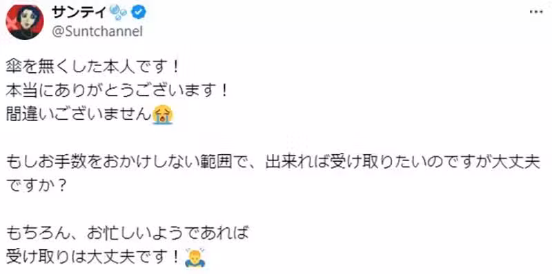 「成功拿到傘了,圓滿結束。真的謝謝大家!」