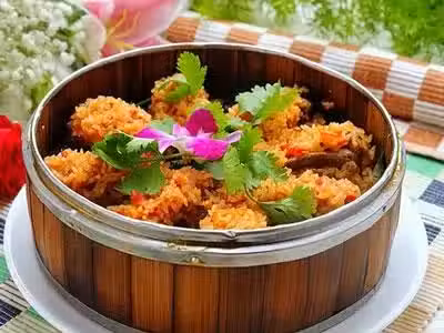 按上述方法做好的枇杷葉粉蒸排骨有枇杷葉特殊的清香、酒糟的醇香和豬排的濃濃肉香,肉嫩骨酥且能讓你胃口大開。