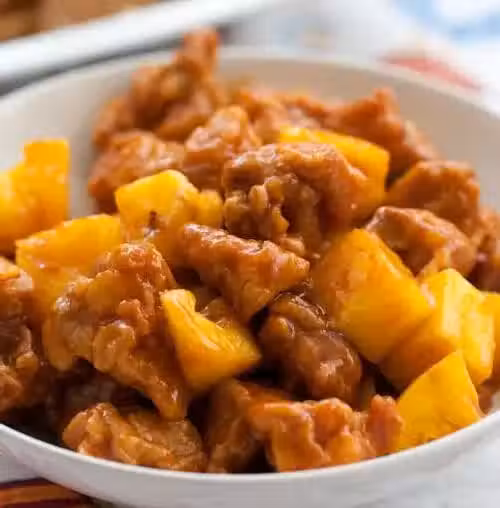 最後將菠蘿倒入鍋中,翻炒均勻便可出鍋。