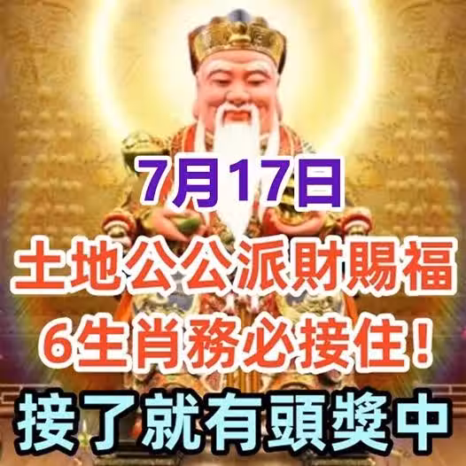 7月17日:土地公公派財賜福,6生肖務必接住!接了就有頭獎中!
