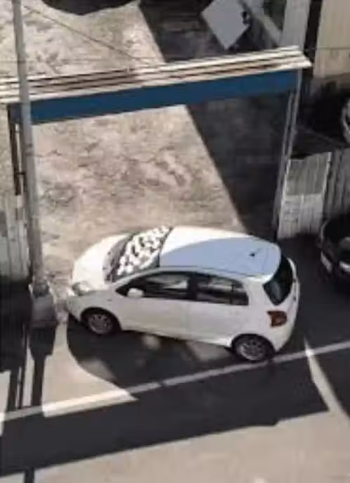 而且最扯的是王先生下班後仍看到這輛車子,依舊停在社區的入口處!不過正當他忍不住想要爆氣開譙的時候,突然發現一個讓自己不敢置信的畫面。從圖片中可以看到原本停在社區口的車子另一邊可說是面目全非,鈑金上出現一個又一個凹洞,仿佛就像蜂窩一般。
