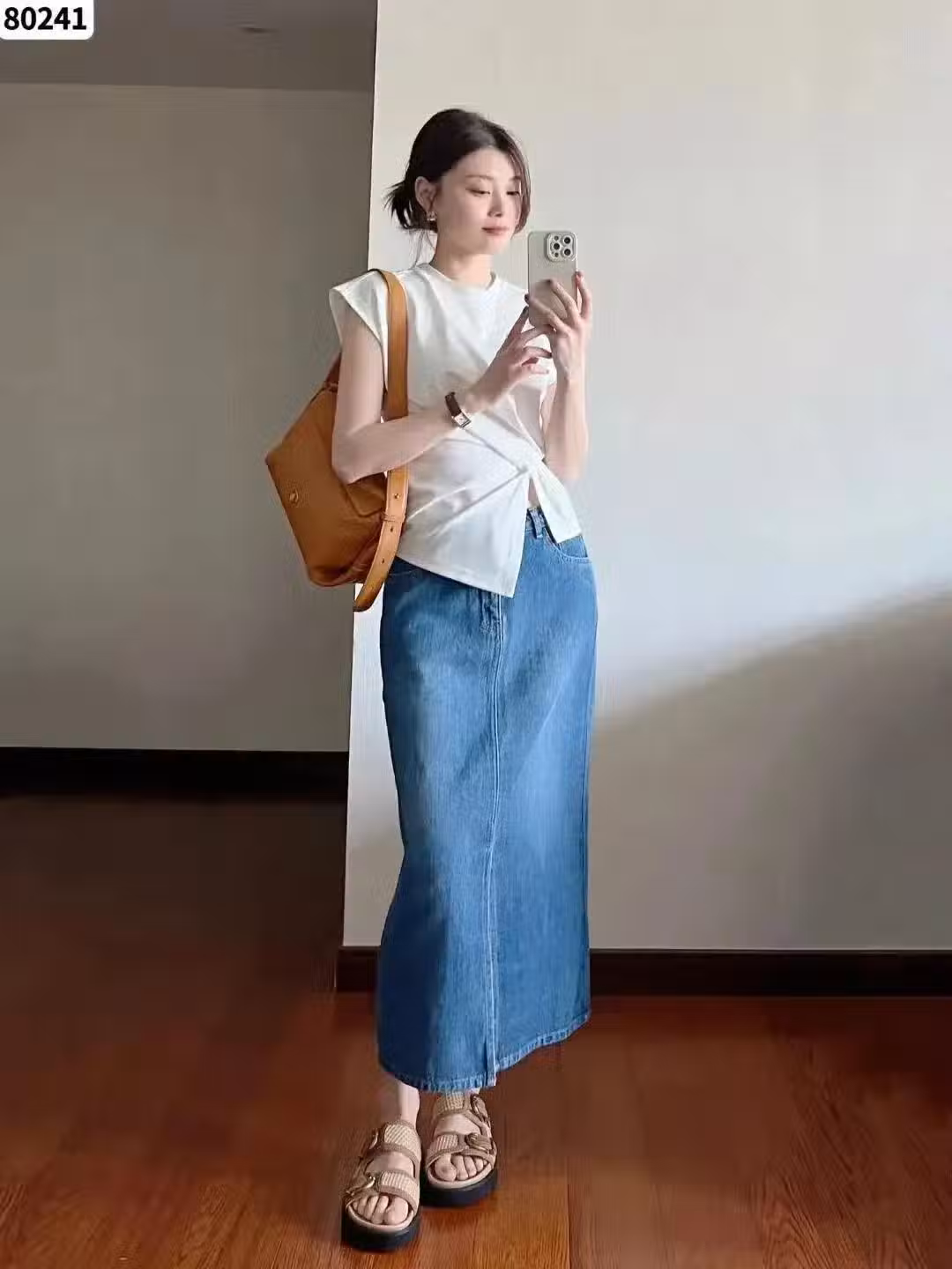 作為出遊的穿搭,不僅要好看漂亮,也要實用日常。像這位博主就選擇了略微修身的黑色短袖T恤和牛仔的半身長裙搭配,認識顏色還是款式的選擇都是非常簡約低調的,而且作為咱們的出遊穿搭也足夠的方便簡潔,拍照也好,日常出行都合適。