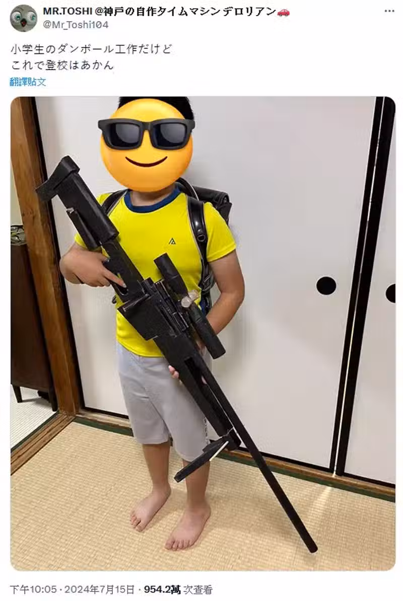 小學生用厚紙板做出了一把狙擊槍,在這個時間點秀出來有點尷尬