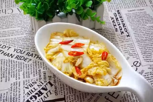 白菜、醬油、原香醋、薑末、白糖、食油、精鹽五分。