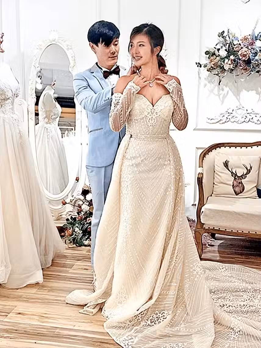 香港女星與未婚夫試婚紗情不自禁激吻!男方有癌症家族史確診胃癌