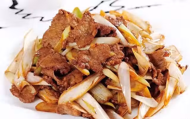 鍋中留底油,燒熱後將蒜碎和大蔥絲放入爆香。然後將羊肉片放入,再調入白砂糖、料酒、香醋和鹽,大火翻炒片刻即可。