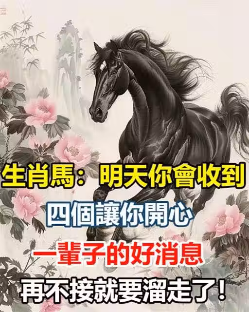 生肖馬:明天你會收到四個讓你開心一輩子的好消息,再不接就要溜走了!