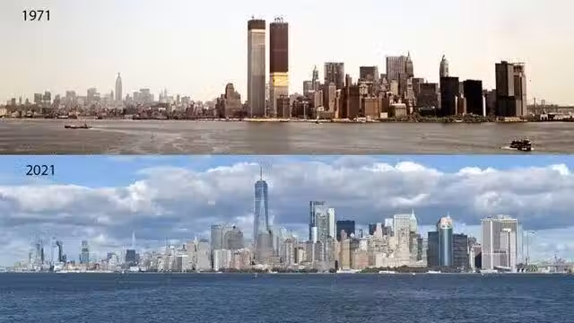 14.紐約曼哈頓區域的城市剪影,最明顯的變化就是911事件後,雙子塔轟然倒塌,如今在原址上已經新建了一座新世貿中心。