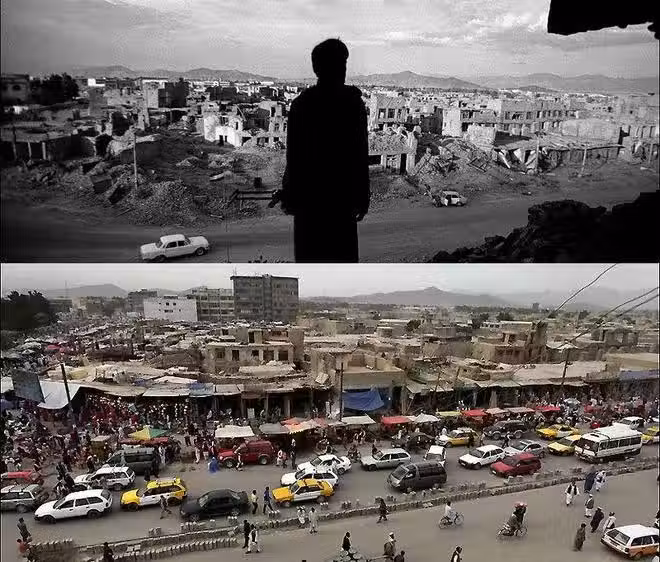 阿富汗的1994年與2010年對比,多年來的戰爭摧毀了無數人的家園,不過即便在充滿了殘垣斷壁的廢墟中,人們逐漸適應依舊照常生活,如此景象看起來充滿了魔幻現實主義氣息。