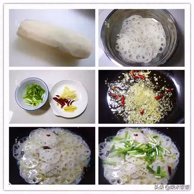 5,藕片很薄,很快就炒熟了。然後加入蔥段、鹽、雞精調味,炒勻即可出鍋。清脆爽口,開胃好吃。