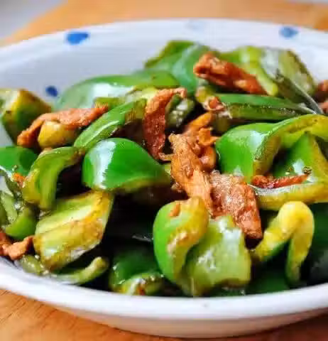 材料:青椒2隻、豬裡脊肉50克、大蒜2瓣