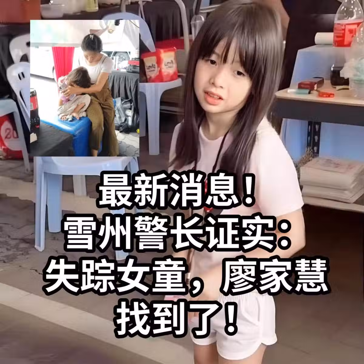 最新消息!!雪州警長證實:失蹤女童,廖家慧找到了!