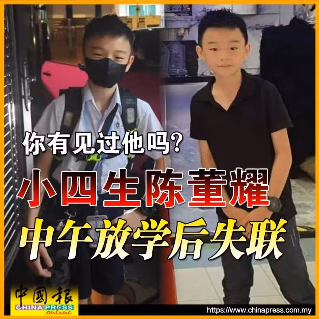 你有見過他嗎?小四生陳董耀 中午放學後失聯