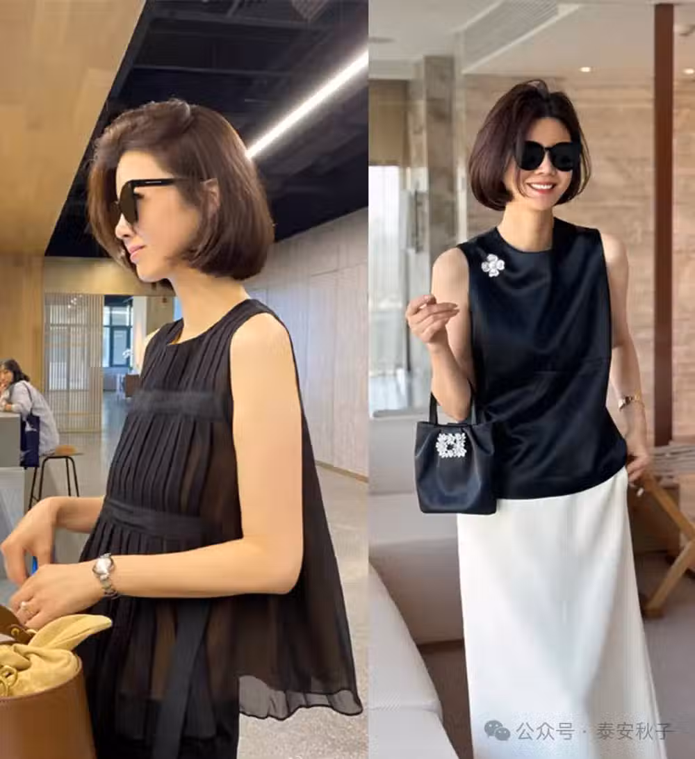 建議多多嘗試舒適、又輕盈的背心單品。可以配直筒的褲或者裙,當然配飾一定要貴氣,才能適當展現出穿著者的風格、與品味。