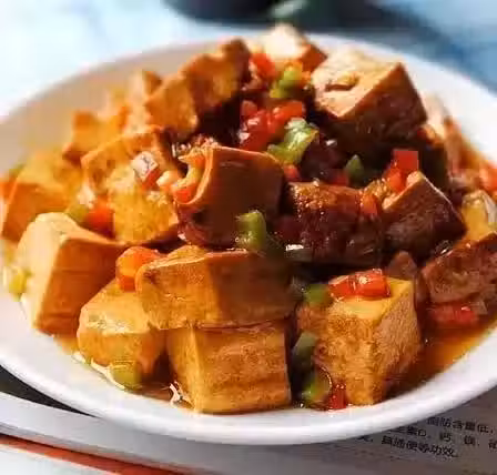 5)留少許底油,倒入豆腐塊