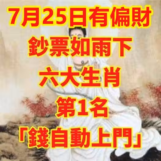 7月25日有偏財,鈔票如雨下的生肖! 第1名「錢自動上門」