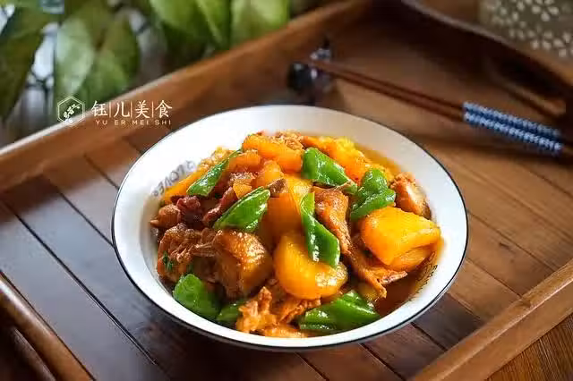 做法:1、小雞處理乾淨剁成大塊。倒入生抽、老抽抓勻腌制10分鐘。2、土豆削皮洗乾淨,切成大塊。3、熱鍋熱油,倒入雞肉、生薑、蒜頭、八角、桂皮、鹽、雞精,大火爆炒3分鐘,再倒入一大碗熱開水,蓋上鍋蓋燉15分鐘。4、燉至可以插入筷子,即可放入土豆再燉6分鐘左右,燉至熟爛放入青椒再燉2分鐘即可盛出。