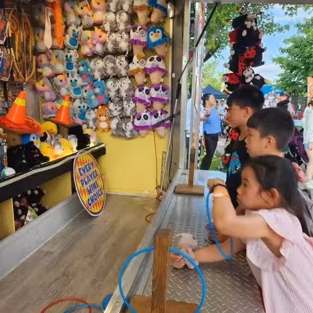 陳茵媺昨日(24日)便在社交平台曬出與子女到排骨節的片段,見到她三名子女在玩攤位遊戲,其中穿上可愛格子短裙的小女兒Camilla最為賣力,向來公仔隨身的她似乎很想得到獎品。