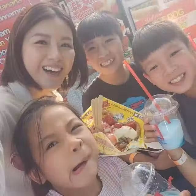 兩個兒子Aiden和Nathan都熱到面容扭曲,不停喝沙冰,相反女兒Camilla似乎很享受,表情多多相當有趣,又為拍攝中的陳茵媺拿沙冰,在視頻中更見有人向媽咪遞上飲品,非常乖巧。
