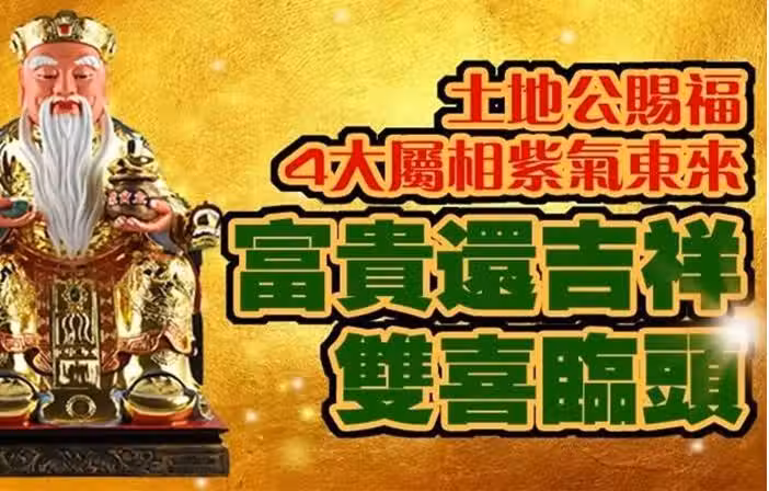 土地公賜福,四大屬相紫氣東來,富貴還吉祥,雙喜臨頭快來接