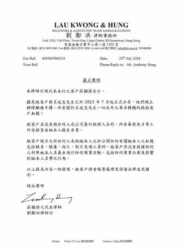 但一個獨力承擔家庭的女人,卻在婚後日子得不到應有的愛護,常活在被情緒勒索的惶恐、言語暴力的傷痛之中」,不僅僅是個人生活,甚至還導致親朋好友、工作夥伴都遭受前夫騷擾,才決定發布聲明警告對方。
