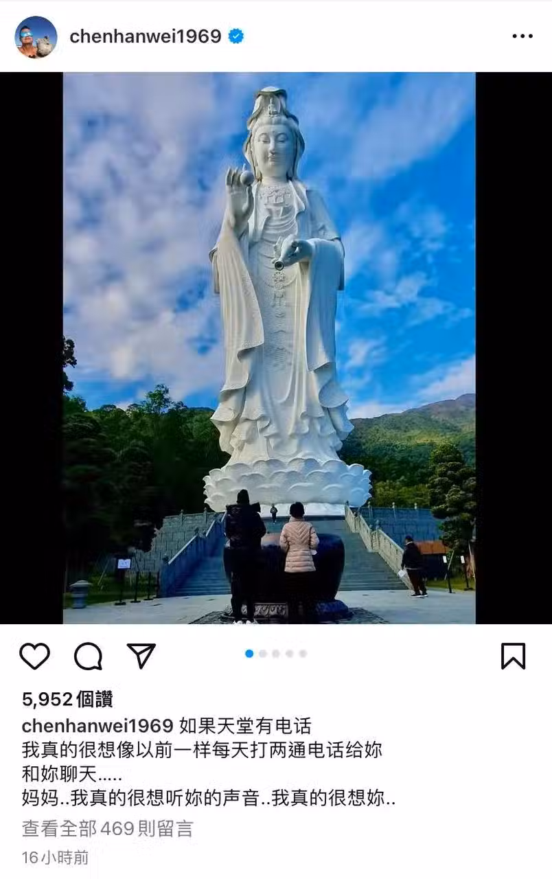 在陳漢瑋的社交媒體帳號,他經常分享與母親的旅行照片以及母子合照,流露出深厚的母子情。