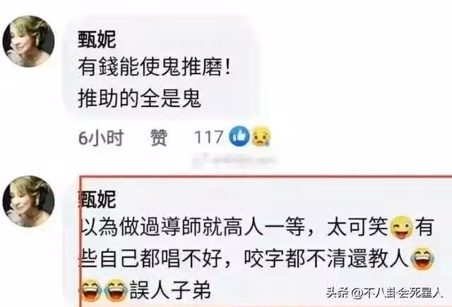 她甚至點名說了,那英,那英的姐姐那辛,王菲,謝霆鋒是資本商。