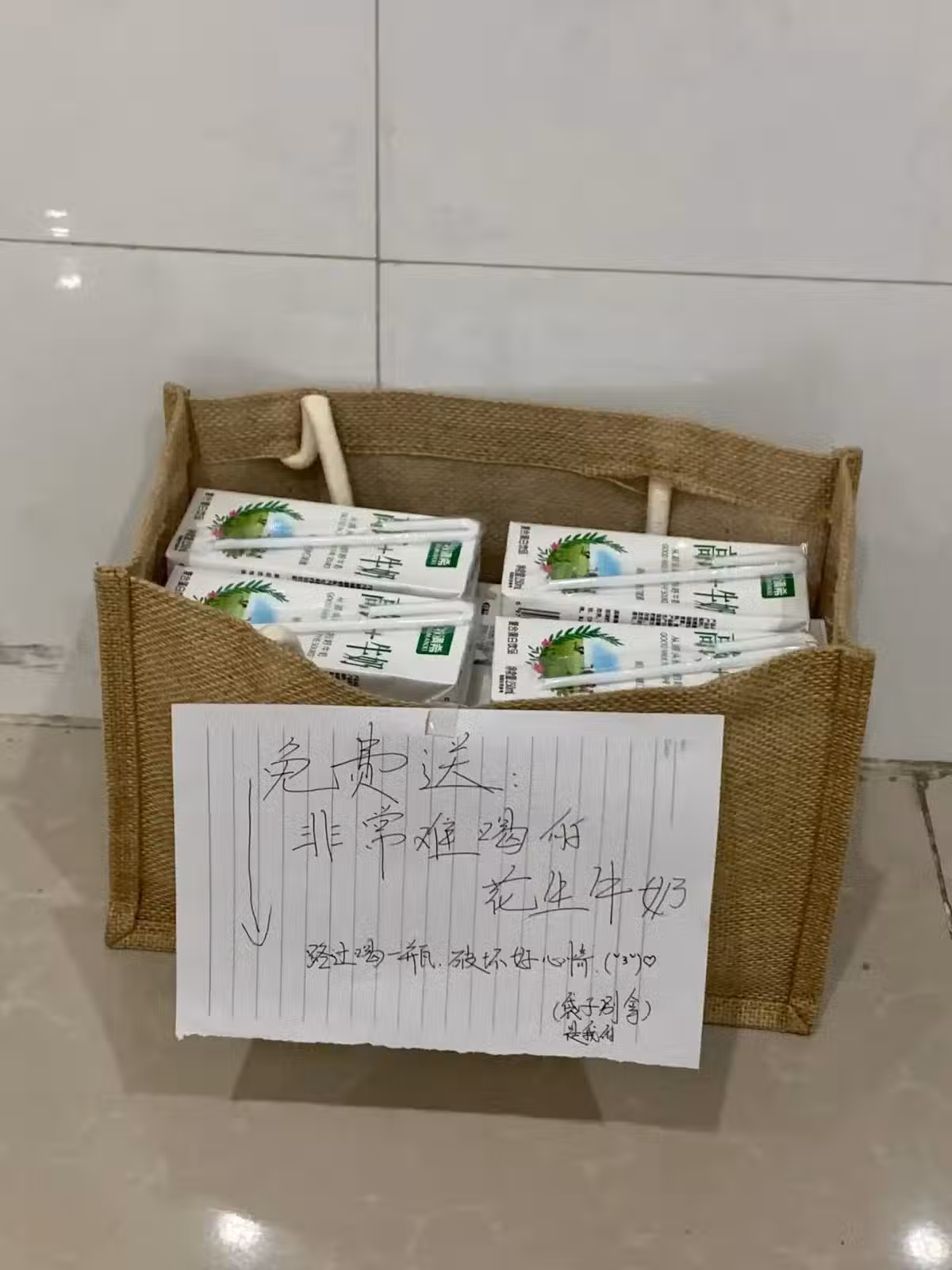 小紅書帳號「Mango.」就分享了自己的經驗,她表示自己買了一箱非常難喝的花生牛奶,但直接丟掉感覺太浪費,不知道該怎麼處理...這時他突然想起之前曾在網絡上看到有人免費將零食點心放在路邊送人,於是便也裝了一袋牛奶,並貼了張紙條寫「免費送!非常難喝的花生牛奶」算是非常誠實XDD