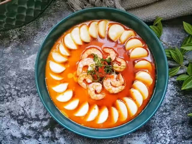 1、準備食材,雞蛋豆腐一般賣火鍋食材的地方都有,都有這種單獨的小包裝,準備一個雞蛋,8隻大蝦去頭去殼去蝦線,用一茶匙料酒腌制10分鐘。