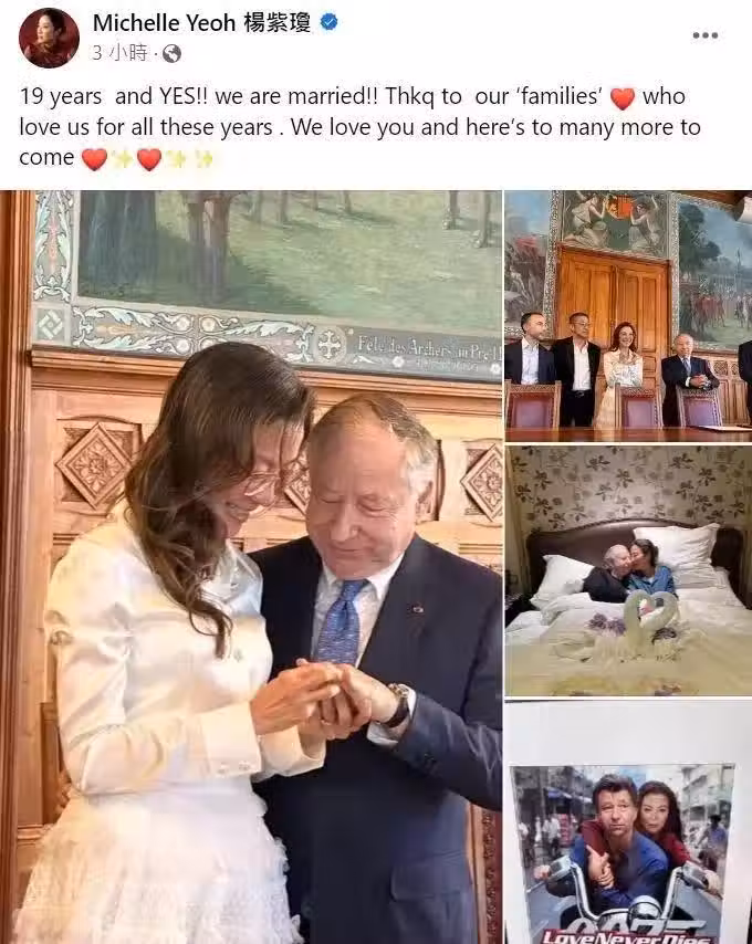 楊紫瓊慶祝結婚一周年,曬與老公恩愛合影露甜蜜笑容好幸福,78歲讓·托德身體硬朗