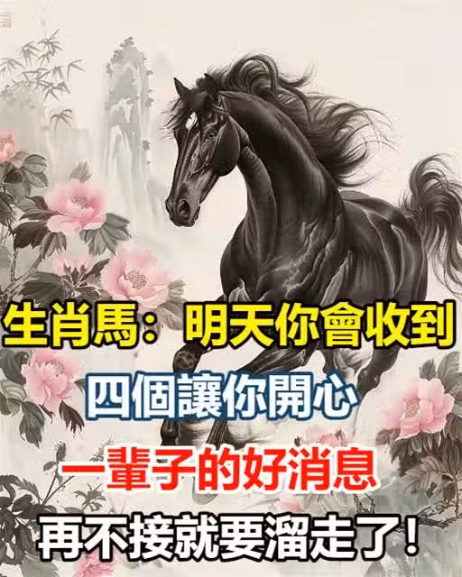 生肖馬:明天你會收到四個讓你開心一輩子的好消息,再不接就要溜走了!