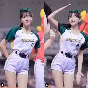 台鋼雄鷹啦啦隊「Wing Stars」26歲韓籍成員安芝儇(小安),除了有一張精緻五官,身高170公分的她,光腿長就有100公分,近乎完美的身材比例連女生都傾慕。安芝儇近日在IG上傳跳葉弟應援舞的影片,還同框「台鋼王牌」一粒,兩大女神合體,畫面賞心悅目。 安芝儇28日分享在明星對抗賽的側拍,她大跳球員葉保弟專屬應援舞,纖細手臂、白玉美腿跟著節奏做出頓點,高馬尾隨肢體左右甩動,加上甜美笑容,殺傷力頗大,網友輪番讚嘆:「越跳越美」、「太香了」、「有小安,心就安!」
