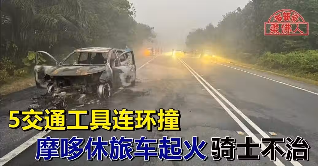 哥打丁宜警區主任胡欣警監今日發文告支出,警方是於今日清晨5時55分接獲公眾投報上述地點發生連環撞車禍,並有2輛交通工具起火燃燒。