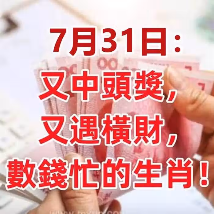 7月31日(7月最後一天)又中頭獎,又遇橫財,數錢忙的生肖!