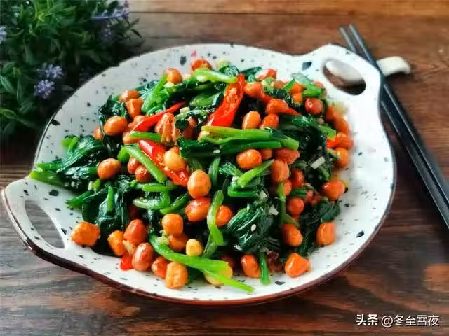 【果仁菠菜】所需材料:菠菜半斤、花生米1碗、小米辣3-4個、油鹽適量、大蒜3瓣、海鮮醬油1湯匙、香醋1湯匙、白糖半湯匙、熟芝麻適量、