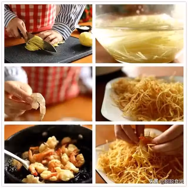 【操作步驟】1、把土豆去皮後切成細絲,土豆絲切得越細越好,粗細儘量均勻一些。土豆絲切好之後,放入冷水中泡去表面的澱粉。