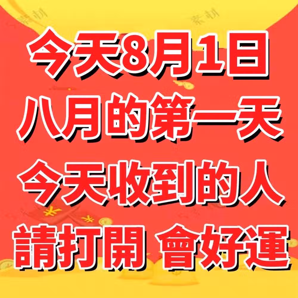 今天八月一號!八月第一天,今天收到的人請打開!會好運!