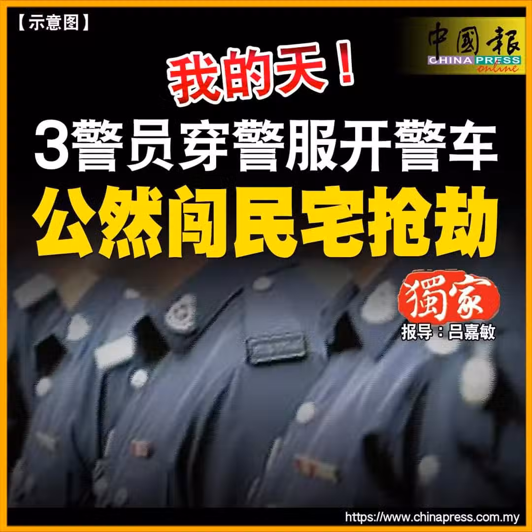 (加影1日訊/獨家報導)3名警察身穿警服,駕著警車,公然闖入民宅搶劫,得手後逃跑時,碰上警隊巡邏車,竟朝路面開5槍示警逃走!