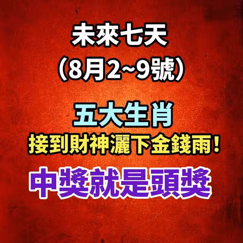 未來七天(8月2 到 9號)接到財神灑下金錢雨!中獎就是頭獎的生肖