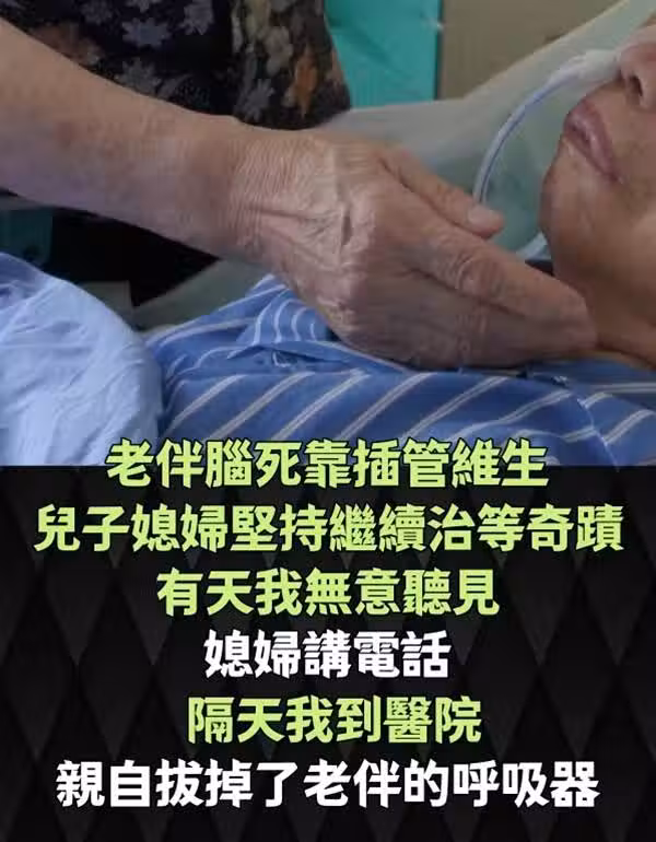 老伴腦死靠插管維生... 兒子媳婦堅持繼續治等奇蹟!有天我無意聽見「媳婦講電話」 隔天我到醫院「親自拔掉了老伴的呼吸器!」