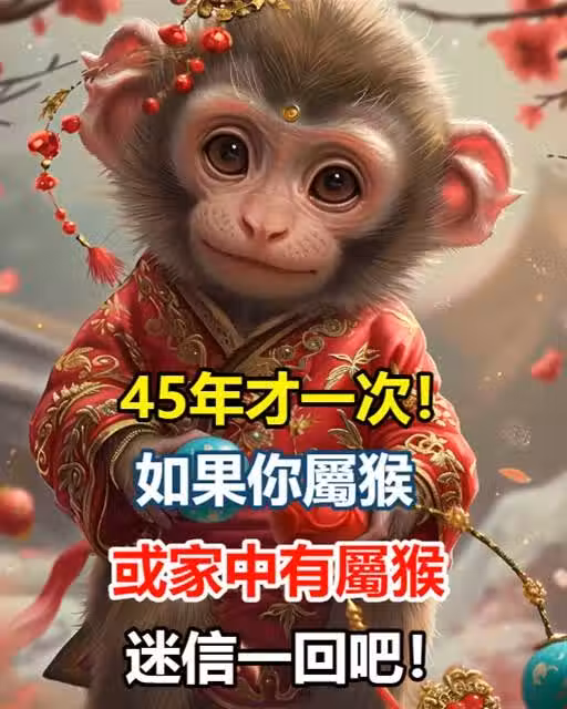 如果你不是屬猴,你最愛的人屬猴,或家中有屬猴,45年才一次!迷信一回吧!