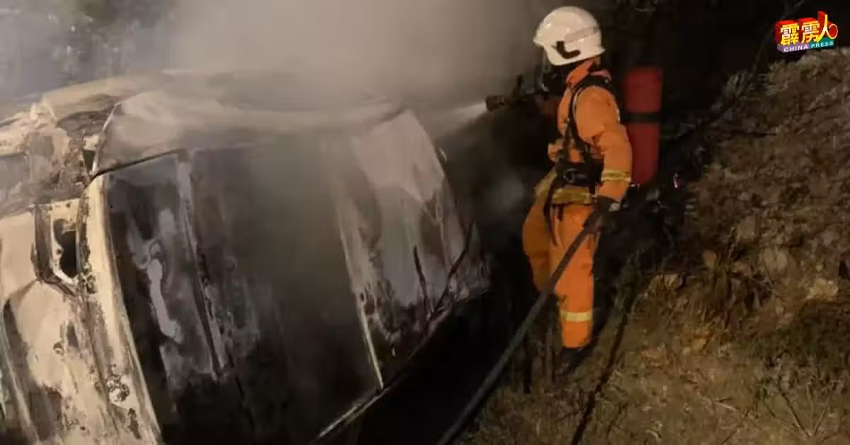 (怡保6日訊) 一輛本田城市失控墜落溝渠後起火燃燒,大火迅速將轎車燒毀98%,車內來不及逃生的司機葬身火海,慘被燒成焦屍!