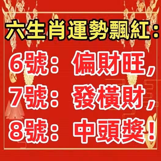 六大生肖運勢飄紅:8月6號偏財旺,7號發橫財,8號中頭獎!