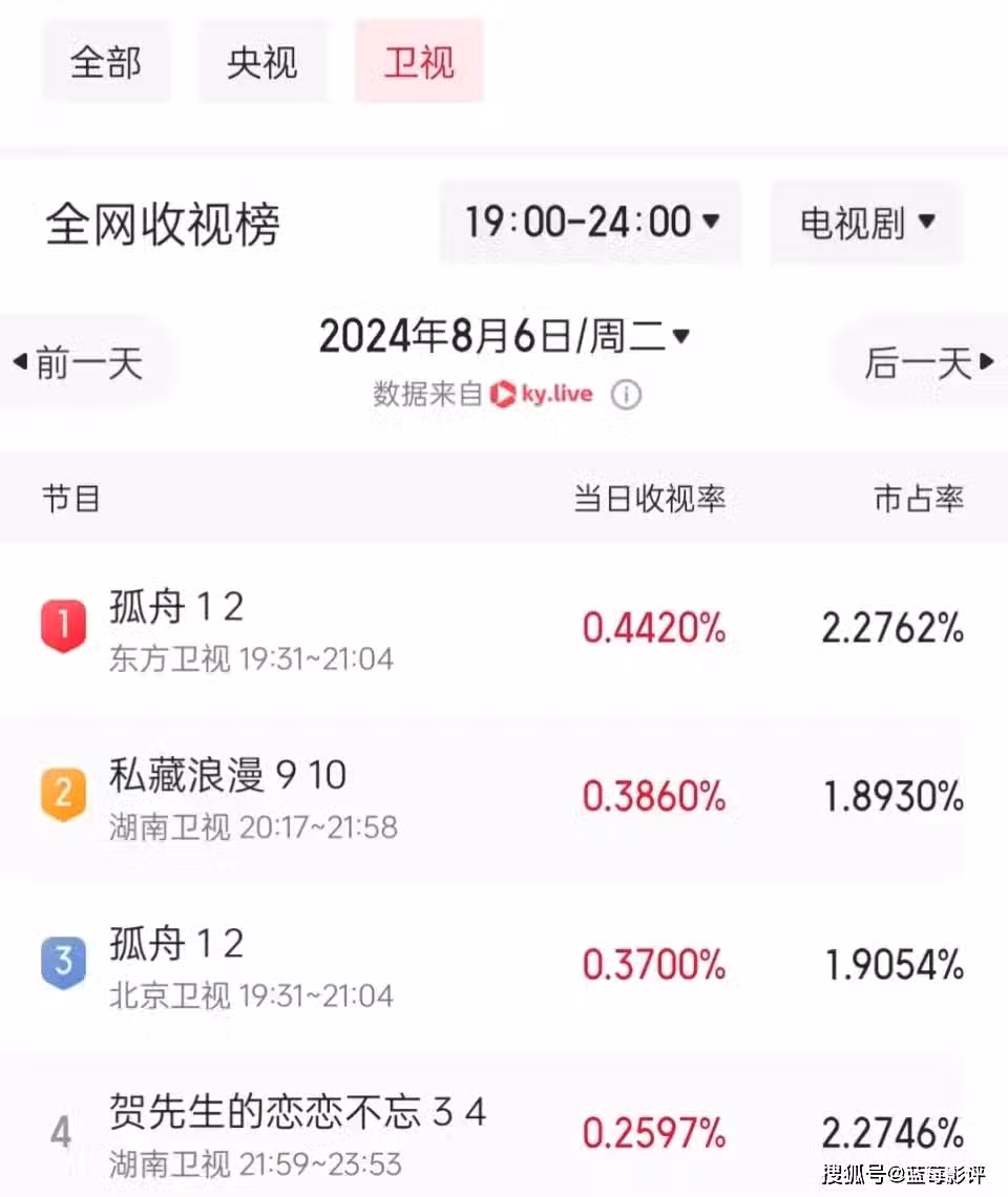 除了收視率表現亮眼外,《孤舟》的首播口碑也很不錯,豆瓣評論區好評如潮,清一色四五星好評。