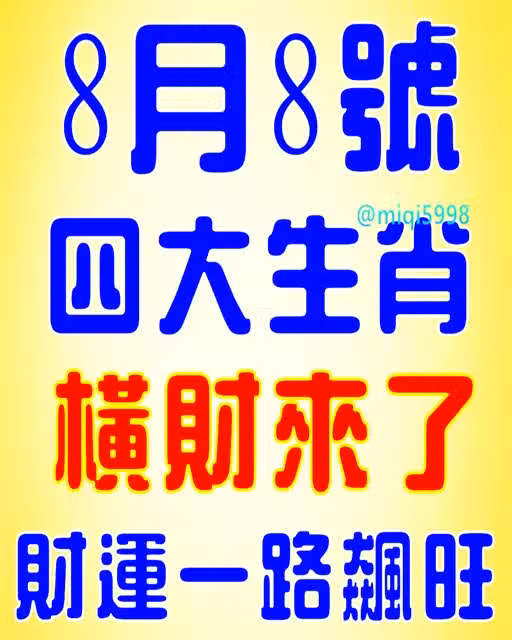 在人生的旅途中,財運的旺盛與否直接影響著人們的物質生活和精神狀態。 自8月8日起,四大生肖將迎來財運一路飆旺的絕佳時機,大吉大利,八方聚來厚財,運勢達到上上籤。 以下是這四大生肖的財運分析,讓我們一起來看看他們如何在這段時間內實現財富的飛躍。 有福之人留下一句(好運東來)此刻起財運開始滾滾而來,好運也隨之東來。