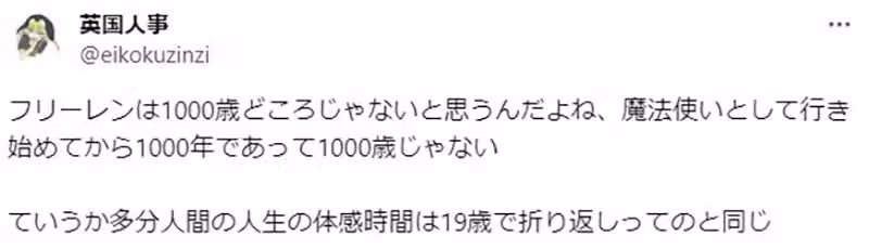 「我現在35歲,也會覺得10年很短啊。什麼!?已經10年了!?的感覺。現在都感覺每一年過得很快,而且還越來越快,年輕的時候真的無法想像……對芙莉蓮來說,時光流逝的感覺應該會更快吧?」